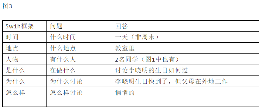 图一:同学们讨论过生日,说得很热闹,李晓明也在场,但他只是听。