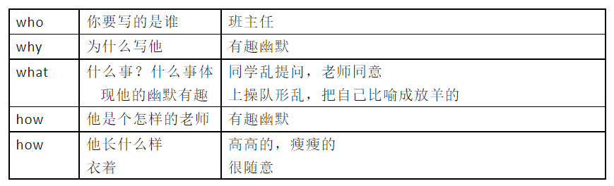 选好要写的老师和事情后,我们来用5W1H提出几个问题。